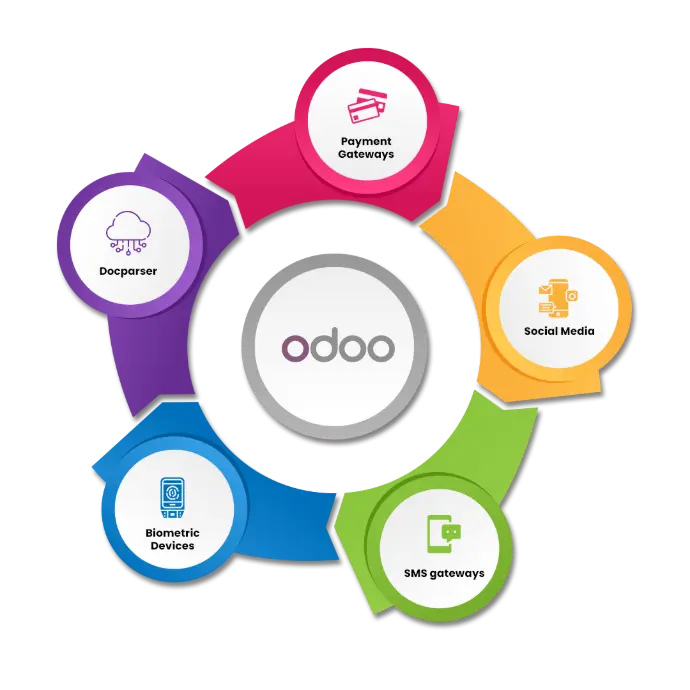 Odoo'nun diğer uygulama ve araçlarla entegre çalışması, işletmenizde işlem yönetimi ve kontrolü daha etkin bir şekilde yürütmenize olanak tanır. Bu nedenle biz, ödeme ağ geçitleri, sosyal medya platformları, e-ticaret çözümleri, kısa mesaj servis sağlayıcıları, doküman ayrıştırıcılar, gelişmiş biyometrik cihazlar ve sevkiyat entegratörleri gibi birçok alanda kapsamlı entegrasyon çözümleri sunuyoruz. Tüm bu entegrasyonlar, şirketinizin iş operasyonları için ihtiyaç duyduğu eksiksiz ve etkili bir yapı oluşturmanıza yardımcı olur.