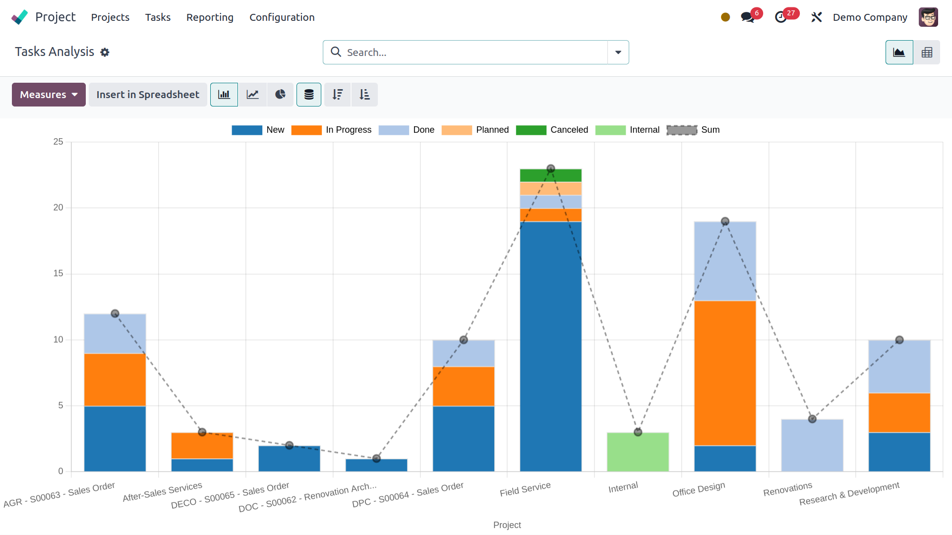 Günümüzde çeşitli proje yönetim araçları mevcut olduğundan, kuruluşunuz için en iyi proje yönetim aracını seçmek zaman alıcı ve analitik bir süreç olacaktır. Analizi gerçekleştirmenin en iyi yolu, operasyonların faydalarını, mevcut işlevsel araçları ve her bir yazılım çözümündeki yatırım getirisini göz önünde bulundurmaktır. Bugün Odoo ile çalışan kullanıcıların çoğu, proje yönetimi operasyonlarını yürütmek için onu faydalı operasyon araçlarından biri yapan ana neden olan tam teşekküllü kapasiteye sahip olmalarını sağlayan proje yönetimi modülünü kullanmaktadır.